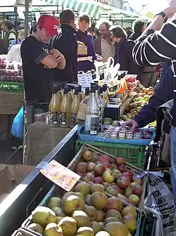 Before the late 20th century, it was the site of a busy fruit and vegetable market, but this slowly dwindled over time—in the early 2000s, market activity was limited to a couple of stalls selling produce. On 8 May 2004 a food market was launched on Saturdays which has since become firmly established.[3] Broadway Market is closed to traffic when the market is being held (9 am–5 pm). Thanks largely to the market a number of new restaurants and boutiques have opened in the area.