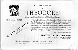 An article on Theodore appeared in RAVE magazine with color photos. Segments from it are in the book Who's Who in Comedy. Just prior to his death from pneumonia, he recorded several monologues for the controversial documentary series, Disinfo Nation. He appeared in Billy Crystal's mockumentary Don't Get Me Started and voiced the character of an ointment expert on NPR's Weekend Edition Saturday version of Julius Knipl, Real Estate Photographer in 1995.