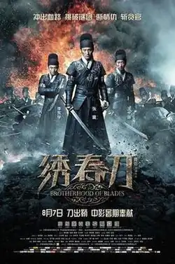 Brotherhood of Blades (Chinese: 绣春刀; pinyin: Xiùchūndāo) is a 2014 Chinese wuxia film directed by Lu Yang.[3] Set in the Ming dynasty (1368-1644), the story follows Shen Lian, a guard of the imperial secret police seeking and his three comrades as they are ordered to hunt down the former eunuch Wei Zhongxian and his faction within the imperial court. Starring Chang Chen, Cecilia Liu and Wang Qianyuan, the film was released in China on August 7, 2014.[3]