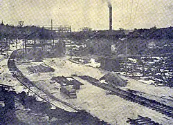 Broughton was first settled at the turn of the 20th century as a mining town for the Cape Breton Coal, Iron & Railway Company. British mining engineer Thomas Lancaster and British businessman Col. Horace Mayhew, who owned the company, intended to develop the coal seam at Loon's Lake. The pair raised millions of dollars, mostly from English investors, and construction on the town was started, with streets laid out and a number of large official buildings constructed, including the Office Building, the Assistant Manager's House, the Broughton Arms Hotel and Crown Hotel.[3] Remains of these substantial buildings can still be seen today, the scale of which giving an impression of the town's lofty ambitions.