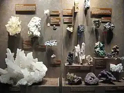 The museum has permanent exhibits featuring the natural sciences in regional and global perspective focusing on geology, paleontology, archaeology, local Native Americans, natural history, and the effects of man on the areas around Greenwich.[6] There are several display cases with mineral specimens, including a touchable meteorite, large mineral crystals from around the world and minerals that glow in black light. There are several cases focusing on the changes in the land and environment of Greenwich from pre-settler days up until the early 1900s. A large exhibit focuses on different prehistoric eras and fossils associated with those times. A fifteen-foot diorama displays local woodland wildlife. Other display cases show more birds and animals found in the area. A marine tank holds live small fish, crabs and sea stars for close examination.