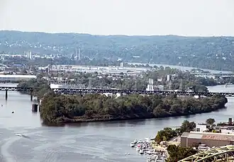 Brunot Island (also spelled Brunot's Island) is a 129-acre (52 ha) island in the Ohio River. It is officially part of the Marshall-Shadeland neighborhood of Pittsburgh, Pennsylvania, United States. It was named for Dr. Felix Brunot who settled the island with his extended family in the late 1700s.[1] The family entertained the Lewis and Clark Expedition on the island in August 1803. The island is home to the Brunot Island Generating Station, a 315 MW fossil fuel power plant.