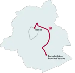 The tram route 25 in Brussels, Belgium, is operated by STIB/MIVB, and connects Rogier metro station in the municipality of Saint-Josse-ten-Noode to Boondael railway station in the municipality of Ixelles.[1]