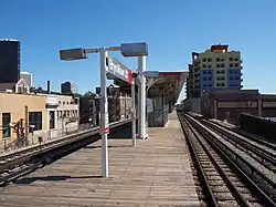 A depot on the Chicago, Milwaukee, and St. Paul Railroad Evanston route was constructed at Bryn Mawr in about 1886.[3] When the Northwestern Elevated Railroad was extended north from Wilson in 1908, taking over from Chicago, Milwaukee & St. Paul Railroad, they opened a station at Bryn Mawr called Edgewater Station. This station was rebuilt to a design by architect Charles P. Rawson when the tracks between Wilson and Howard were elevated onto an embankment in 1921 – the name was changed to Bryn Mawr soon after.[4] The station was extensively renovated in 1974, and an escalator was added. In 2006, the signage at Bryn Mawr was replaced, and three-sided pylons which display maps and schedules were installed in the station house and on the platform.