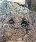 Measurements of the boulder: 65 x 150 cm H. 60 x W. 120 x D. 13 cm Material: Granite gneiss Reference: Published Orientation: Facing open sky Map ref. Topographic sheet. 43 B/5 (8645)[6]