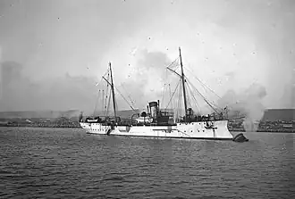 Nadezhda served as a royal yacht for the King of Bulgaria, the aft part of her deck house being converted into a lounge. In 1912 she ran aground, but was soon refloated and repaired.[3] During the First Balkan War, she was disarmed due to her poor condition. Her guns were soon fitted again but were landed once more in 1915. In September 1918, she was taken to Sevastopol for repairs, but her crew abandoned her there in December that year.