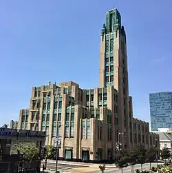 Bullocks Wilshire, located at 3050 Wilshire Boulevard in Los Angeles, California, is a 230,000-square-foot (21,000 m2) Art Deco building. The building opened in September 1929 as a luxury department store for owner John G. Bullock (owner of the more mainstream Bullock's in Downtown Los Angeles).[2] Bullocks Wilshire was also the name of the department store chain of which the Los Angeles store was the flagship; it had seven stores total; Macy's incorporated them into and rebranded them as I. Magnin in 1989, before closing I. Magnin entirely in 1994. The building is currently owned by Southwestern Law School.