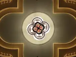 The building was designed by Los Angeles architects John and Donald Parkinson;[3] the interior design was by Eleanor Lemaire and Jock Peters of the Feil & Paradise Company;[3] the ceiling mural of the porte-cochère was painted by Herman Sachs.[3]