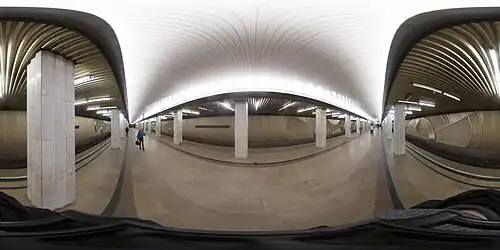 Bulvar Rokossovskogo (Russian: Бульва́р Рокоссо́вского, English: Rokossovsky Boulevard)pronunciation, previously Ulitsa Podbelskogo (Russian: У́лица Подбе́льского, English: Podbelsky Street), is a Moscow Metro station in the Bogorodskoye District, Eastern Administrative Okrug, Moscow, Russia. It is on the Sokolnicheskaya line, serving as its eastern terminus. The station was opened in 1990.[1] Riders may make an out-of-station transfer to Bulvar Rokossovskogo on the Moscow Central Circle line.