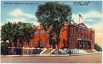 - ^ a b c d e Thomas Visser, Memorial Auditorium's Place in Burlington's Civic Story, 26 September 2017 [2]. Accessed 29 July 2023.