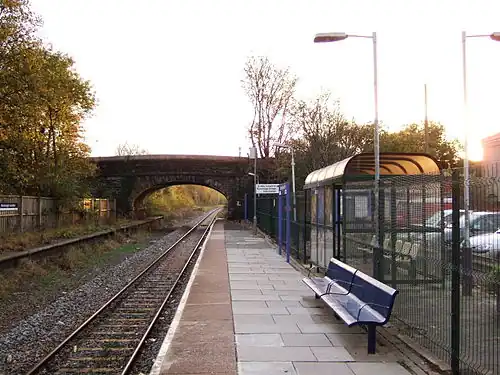 Burscough Junction pronounced (Burs/co Junction) is one of two railway stations serving the town of Burscough in Lancashire, England. It is sited on the Ormskirk Branch Line, 2+12 miles (4 km) north of Ormskirk and is served by Northern Trains. The station was the scene of the Burscough Junction rail accident in 1880.[1]