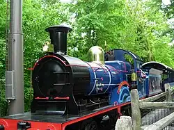 The Busch Gardens Railway is a 3 ft (914 mm) narrow-gauge amusement park heritage railroad attraction located within Busch Gardens Williamsburg amusement park in Williamsburg, Virginia. Opened in 1975, the railway is 1.5 miles (2.4 km) long, and has stations in the Heatherdowns, Festa Italia, and New France sections of the park. It features three trains pulled by 4-4-0 steam locomotives manufactured by Crown Metal Products.[1]