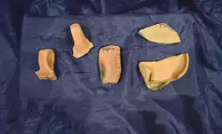 In 1768, 260 late Roman North African amphorae were found stacked in a chamber of the Kortin[H] warehouses, twenty four of which had graffiti of a religious nature on them.[38] Given the distance from the main town, historians assume that these warehouse facilities were used for redistribution towards other harbours in the Central Mediterranean.[38] Large quantities of Byzantine era pottery were also found at the Kortin promontory in Marsa, with traces of a fire leading excavators to assume that the buildings and the quay were abandoned in late eight or early ninth century, with the date established due to the presence of globular amphorae on site.[39] The presence of earlier ceramics at the same level may indicate an earlier abandoning.[39]