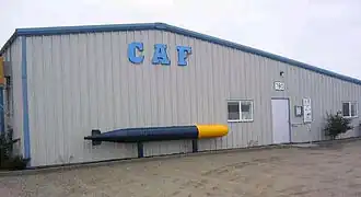 TBM Avenger Aircraft N53503 is a Torpedo Bomber M model World War II single engine aircraft in flying condition which was listed on the National Register of Historic Places in 2017.[3] It is 40 feet (12 m) long with 52 feet (16 m) wingspan (with wings folded, 16 feet (4.9 m)).[3]