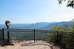 The park is noted for its panoramic view of the mountain country and is a destination for hiking, trailside camping, and picnicking. A popular hiking trail in the park leads to the 420-foot-high (128 m) Raven Cliff Falls, crossed by a suspension bridge. There are five other waterfalls in the park.[9]