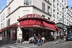 The Café des 2 Moulins (French pronunciation: [kafe de dø mulɛ̃], "Café of the Two Windmills") is a café in the Montmartre area of Paris, located at the junction of Rue Lepic and Rue Cauchois (the precise address is 15, rue Lepic, 75018 Paris). It takes its name from the two nearby historical windmills, Moulin Rouge and Moulin de la Galette.[1] The interior consists of a bar area and multiple small tables.