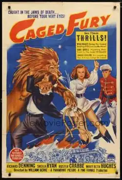 Caged Fury is a 1948 American drama film directed by William Berke and written by David Lang. The film stars Richard Denning, Sheila Ryan, Mary Beth Hughes, Buster Crabbe and Frank Wilcox. The film was released on March 5, 1948, by Paramount Pictures.[1][2][3]