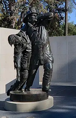The California Firefighters Memorial is a memorial located on the grounds of the California State Capitol in Sacramento, California. It honors firefighters from California or who served in California and who died in line of duty or of other duty-related illness or injury. A memorial ceremony is held each year to honor firefighters who died in the line of duty and to add their names to the memorial wall. This ceremony is usually held in late September.[1]