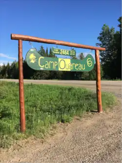 This summer camp is located on the shores of Lac Ouareau, hence its name. The term “Ouareau” is of Algonquin origin, meaning “far away” or “distant.”[18] The toponym "Camp Ouareau" has been known since at least 1922; however, it has not yet been formalized at the Commission de toponymie du Québec.