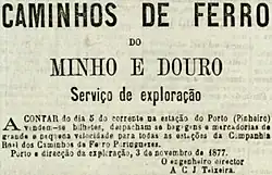 Between 1872 and 1885, Manuel Afonso de Espregueira, was director general for the Companhia Real dos Caminhos-de-ferro (Royal Railway Company), but in 1874, he was responsible for the elaboration of the general plan, that included all the lines that crossed the Douro and Norte region.[2]