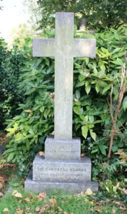 Clarke died at Oldlands, near Uckfield, on 26 August 1902.[2] He is buried beneath a simple stone cross in Brompton Cemetery.