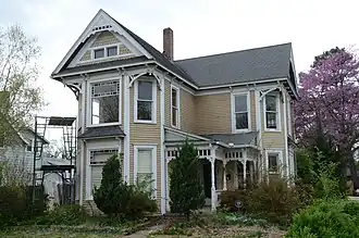 The Campbell House is a historic house at 714 West Third Street in Rogers, Arkansas. It is a two-story L-shaped wood-frame structure with clapboard siding. Its corners are beveled, with overhanging gable corners above, and decorative woodwork in the gable ends above. The entry porch, in the crook of the L, is supported by turned columns with a spindled latticework frieze. The house is a fine local example of Eastlake architecture.[2]