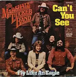 "Can't You See" is a song written by Toy Caldwell of The Marshall Tucker Band. The song was originally recorded by the band on their 1973 debut album, The Marshall Tucker Band, and released as the album's first single. Record World called it "a strong rhythm item that continually builds and builds."[2] A live version was released in 1977 and peaked at number 75 on the Billboard Hot 100.[3] Cover versions of "Can't You See" have charted for Waylon Jennings (in 1976) and the Zac Brown Band with Kid Rock (2010).