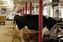 Dairy cattle inside the museum's main building. The museum is considered a "working farm" with a number of livestock on the property.