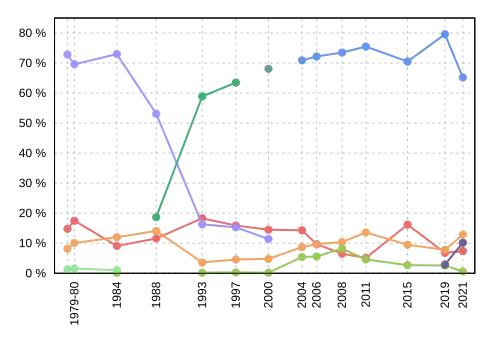 As a measure of how deeply conservative rural Alberta is, the Conservatives retained all their seats there in 2015 when the party was heavily defeated nationally. They took every riding with 60 percent or more of the vote, with centre-left parties only managing to exceed 20 percent mark in three ridings. However, support for the Conservatives was not universal; in all but three ridings, the NDP and Liberals collectively obtained 20 percent, sometimes reaching past 30 percent.