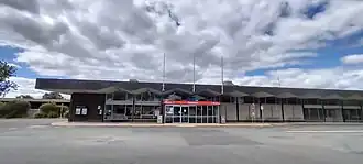 By the late 1930s, the temporary station building had begun to receive criticism for its basic nature and lack of amenities.[9] The station's office building was robbed by a suspected crime gang at Easter in 1933 and again a few days before Christmas in 1934. The Christmas railway robbery saw the door forced with an iron coupling bar and the safe being blown open. The suspected gang got away with just 258 pennies (A£1/1/6d or A$4.15), as only a few hours previously railway officials had removed £500 holiday takings from the safe.[10]