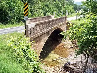 The Cane Hill Road Bridge (also Little Red River Bridge) was a closed-spandrel arch bridge built in 1923 located near Prairie Grove, Arkansas. It carried Arkansas Highway 170 over the Little Red River,[2] and was in 2014 in the process of being bypassed. The bridge has a single span about 43 feet (13 m) in length, with an overall bridge length of 48 feet (15 m). The bridge is 15 feet (4.6 m) wide. AR 170 was the major north–south route in the area when the bridge was built, but this section has since been bypassed by the construction of United States Route 62. The bridge was built by the Luten Bridge Company of Knoxville, Tennessee.[3]