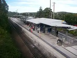 Two carparks are provided on the southern side of the railway station. A small carpark is located directly alongside the southbound track, while a larger carpark is located down another steep staircase. Both carparks are also accessible by lifts.