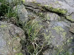 Carex fimbriata is confined to the high-alpine zone of the central Alps, where it grows exclusively on shallow, water-saturated soils derived from serpentinite (an ultramafic rock rich in magnesium and iron). These soils, known as rendzinas, are typically thin and sandy, with a moderately acidic pH (around 5.8) and almost complete cation saturation dominated by magnesium over aluminium and calcium. In this specialised habitat, C. fimbriata forms small, discrete stands in rock fissures and on steep, warm slopes—most often on south-east to south-west exposures between 2,600 m and 2,650 m above sea level. While its range was long thought to extend only from the Lautaret Pass (Hautes-Alpes, France) eastwards to the Poschiavo valley (Switzerland), recent surveys near the Col de la Traversette in the Queyras massif extend its distribution some 50 km further south-west.[3]
