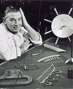 Auböck also studied 1951 at Massachusetts Institute of Technology where he met Ludwig Mies van der Rohe, Walter Gropius, Ray Eames, and Charles Eames.[3] These figures inspired Auböck to integrate American trends in the products designed at the workshop, making them more international and modern.[3] Under his direction, the workshop achieved international status and started collaborating with other design houses such as Hermès and Pierre Cardin.[12] Auböck has also designed for other companies such as Neuzeughammer Ambosswerke, Reichert, Tyrolia, Otto Groh, and Ostovics Tischkultur.[3] He taught industrial design at the University of Applied Arts Vienna in 1997 and served as the president of the Austrian Design Institute.[3]