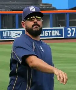 Carlos Manuel Villanueva Paulino (born November 28, 1983) is a Dominican former professional baseball pitcher. He played in Major League Baseball (MLB) for the Milwaukee Brewers, Toronto Blue Jays, Chicago Cubs, St. Louis Cardinals, and San Diego Padres. He also played in the KBO League for the Hanwha Eagles.