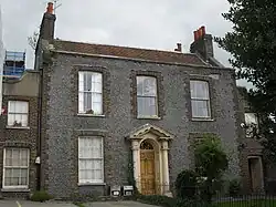Built as Patriot Place in the mid-1810s, Tilbury Place (renamed in the 1860s) and its five houses stood next to the farm and formed a pocket of high-class residential development in a mostly working-class area of small houses. Number 1, also called St John's Lodge, was the largest, and was built for Edward Tarner (a merchant) and his wife Letitia, whose maiden name was Tilbury.[5][17] It passed through the family until 1933, when Letitia Tilbury Tarner, a descendant, left it to her cousin Clara Isabella Bryan, who sold it in 1938 to Brighton Corporation for charitable purposes.[18] It was converted into Tarner Home, a nursing and care institute for poor people,[19][20] and later became a hostel.[21] Nos 1-5 Tilbury Place are now owned by a housing association and used as housing.