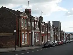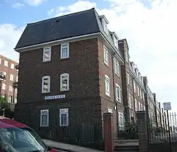 In the late 19th century and early 20th century, Carlton Hill's notoriety as a slum increased. Poverty, drunkenness, disease and low living standards were rife.[3][26] Brighton's reputation was damaged by a disparaging article in The Lancet in 1882: making reference to Carlton Hill, it criticised the town's poor standards of health.[22] Assisted by government funding, Brighton Corporation undertook extensive slum clearance from 1928 until the start of World War II, transforming the area's appearance.[3][5] Two large blocks of flats—Brighton Corporation's first council flats—were built to rehouse many of the displaced residents. The Milner Flats, a long four-storey block, stand on the site of Woburn Place, and were completed in 1934. Alderman Hugh Milner Black, a Corporation member who campaigned for housing improvements in Brighton, was commemorated in the naming. Kingswood Flats, on the site of Nelson Place and a Primitive Methodist chapel, were built in 1938. The name refers to Minister for Health Kingsley Wood.[4][27] Some displaced residents were moved out of the area: the new council estates of Whitehawk and Moulsecoomb, built in the 1920s and early 1930s on the fringe of Brighton, accommodated many former Carlton Hill residents.[26][28] An earlier low-rise development took place in 1931, when the small Tarnerland council estate was built on empty land near Tilbury Place.[23]