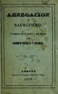 Carmen Bozello y Guzmán (1856 - 1885) was a Puerto Rican writer, best known for her work "Abnegación y sacrificio - comedia en 2 actos y en prosa".[1]