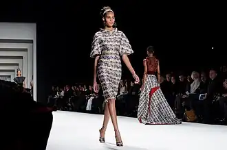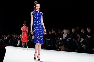 Herrera's mentor Diana Vreeland, then Editor-in-Chief of Vogue suggested that she design a clothing line.[12] Herrera founded her clothing line in 1980, and had samples made in Caracas. She debuted her collection at Manhattan's Metropolitan Club to critical acclaim.[13] A well known Park Avenue boutique, Martha's, agreed to showcase her clothing in their prominent windows. Upon this initial success, she returned to Caracas and raised capital to fund a more formal launch. She debuted her first full collection at the Metropolitan Club in April 1981.[14] The show included supermodel Iman and was the first time the venue permitted a fashion show within its walls.[4][9]