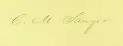 Caroline M. Sawyer (née, Fisher; pen name, Mrs. C. M. Sawyer; December 10, 1812 – May 19, 1894) was a 19th-century American poet, writer, and editor.[1] Her writings ranged through a wide variety of themes. Born in 1812, in Massachusetts, she began composing verse at an early age, but published little till after her marriage. Thereafter, she wrote much for various reviews and other miscellanies, besides several volumes of tales, sketches, and essays. She also made numerous translations from German literature, in prose and verse, in which she evinced an appreciation of the original. Sawyer's poems were numerous, sufficient for several volumes, though they were not published as a collection.[2]