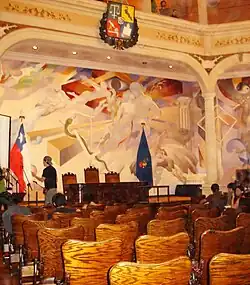 An iconic room of the Palacio was the Salón de Honor, which originally contained a large canvas painting by Ernesto Courtois Bonnencontre named La Alegoría de las Ciencias, las Artes y las Letras.[10] It was destroyed during the student protests in the late 1920s.