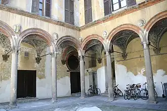 The palace was the home of the Grifi family, also known as Griffi or Grifo, contractors for the collection of gabelle under the Sforza. The family, of merchant origins, had among its exponents influential intellectuals of the Sforza court. Particular mention should be made of Leonardo, archbishop of Benevento and author of poems,[1] and his brother Ambrogio, archiater at the court of Ludovico il Moro, to whom a chapel in San Pietro in Gessate is dedicated.