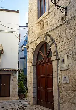 Palazzo Monacelle, seat of the municipal library and former Palazzo De Bellis. Entrance from Via Roma.