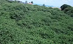 The Cashew Tree of Pirangi (Cajueiro de Pirangi), also called the world's largest cashew tree (maior cajueiro do mundo), is a cashew tree in Pirangi do Norte, Rio Grande do Norte, Brazil.[1] In 1994, the tree entered the Guinness Book of Records.[1] It covers an area between 7,300 square metres (1.8 acres)[2] and 8,400 square metres (2.1 acres).[3] Having the size of 70 normally sized cashew trees,[3][4] it has a circumference of 500 m (1,600 ft).[4] The vicinity of the World's Largest Cashew Tree in North Pirangi is also a main place for the sale of lace and embroidery in Rio Grande do Norte state.[5]
