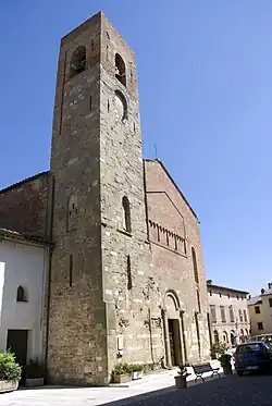 The church of San Niccolò, of Romanesque origin, has a nave and four aisles divided by columns and semicolumns, with two semicircular apses with mullioned windows. The central portal is from the early 14th century, while the portico is modern. It has 17th-century frescoes by Rustichino and, at the high altar, one 14th century Madonna of the Sienese School.