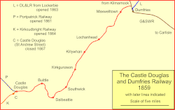 In 1861 the Portpatrick Railway completed a connection from Castle Douglas to Stranraer and Portpatrick, and through traffic ran from Carlisle and points south and east over the CD&DR line.