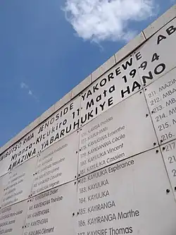 Nyanza Genocide Memorial Site, monument listing names of victims