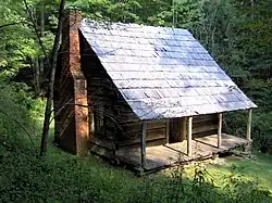 The Hannah Cabin in Little Cataloochee was built by John Jackson Hannah, the son of Little Cataloochee pioneer Evan Hannah. The cabin's chimney is one of only three surviving brick chimneys in the national park.[35]