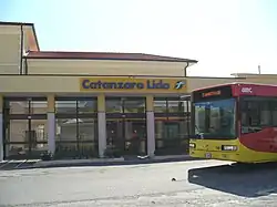 The nearby Catanzaro Lido railway station (FC), operated by the Ferrovie della Calabria (FC),[1] is a terminus of a metre gauge line from Cosenza, and there is convenient interchange between the two stations.