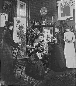 Seated Klein with students in her studio, probably 1902[4]